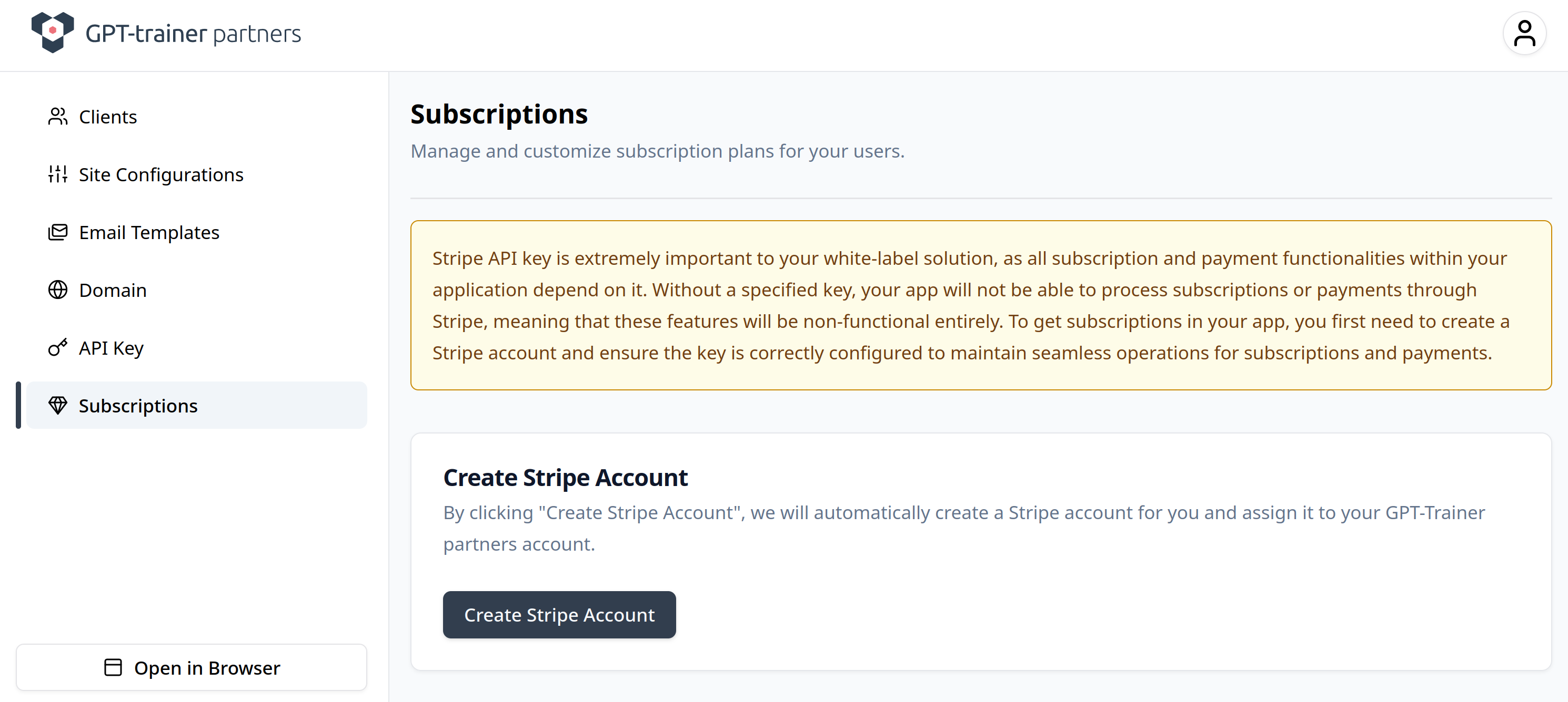 Um deine Whitelabel-App zu betreiben, benötigst du deinen eigenen OpenAI API-Key.Füge ihn einfach im Tab „API Key“ ein, klicke auf „Add“, und schon ist alles bereit.